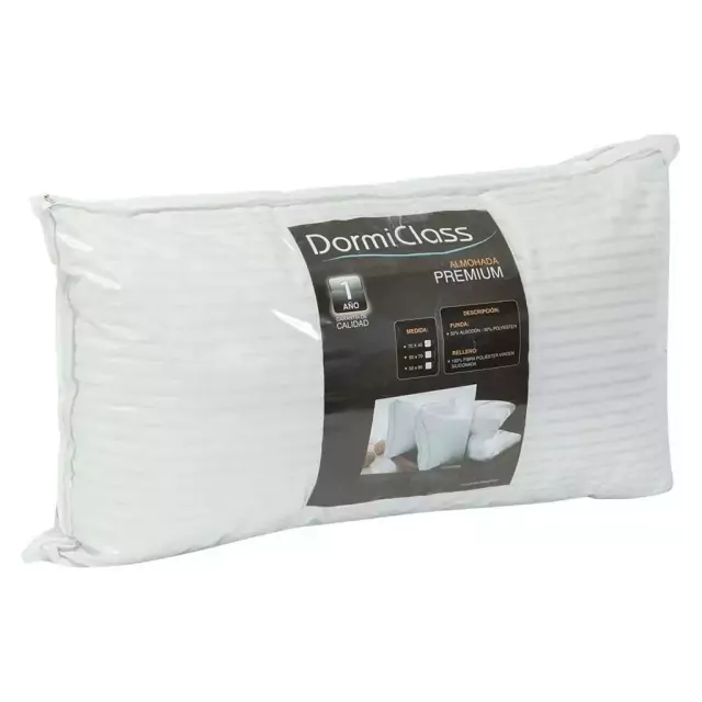 Descripción:Almohada Dormiclas premium, super suave, comoda y liviana. Composición: 50% algodón 50%poliéster. Relleno 100% poliéster Ancho: 0.50 x 0.90 m Usos: Viste el dormitorio