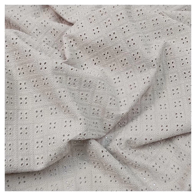 Descripción:El broderi es un tipo de tela que se distingue por sus intrincados y detallados diseños bordados, generalmente en una base de tejido plano y liso.