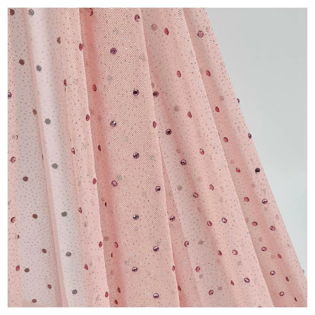 Descripción:Esta es una tela liviana calada con transparencia y elasticidad, con apliques simulando diamantes que cubren toda la tela uniformemente.